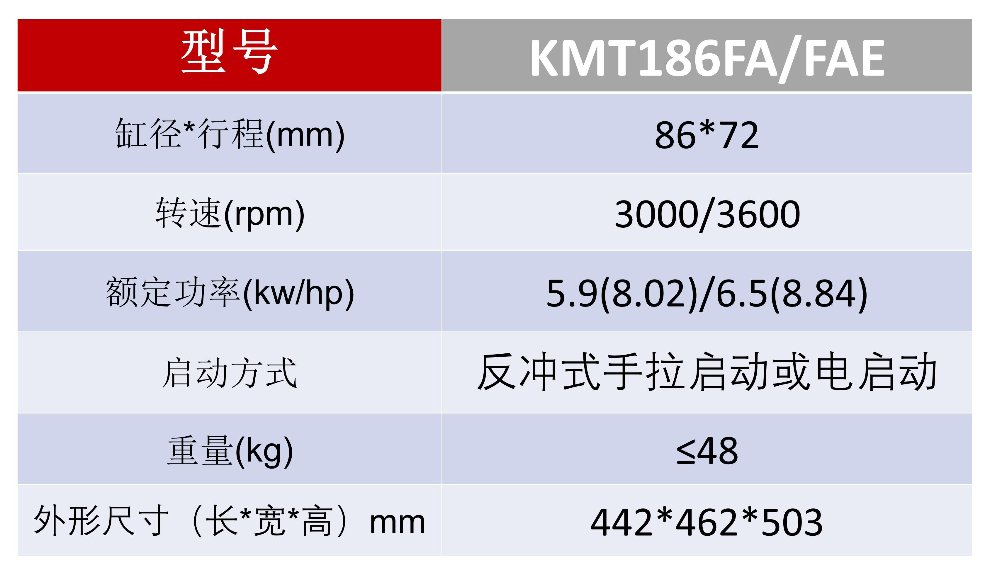 型号:KMT186FA/FAE 功率:6.5KW/ 8.84HP 排量:0.418L