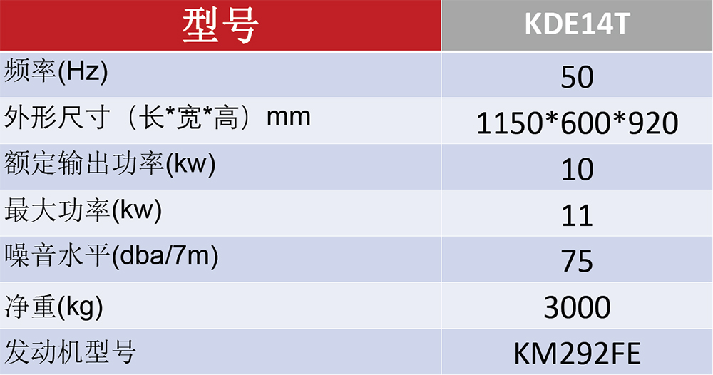 型号:KDE14T 功率:10KW 发动机型号:KM292FE